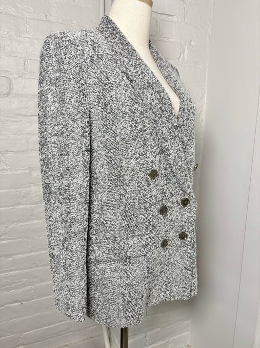 Women Size 16 Akris Punto Gray Tweed Wool, Silk Blazer
