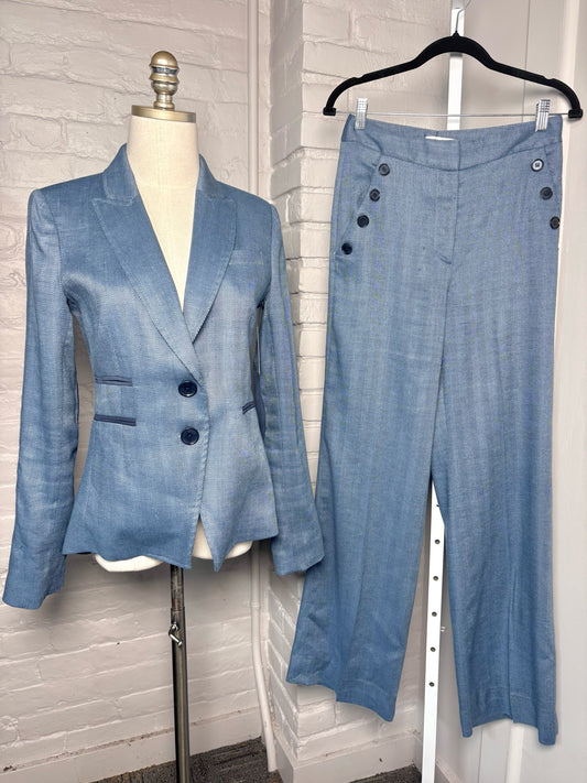 Women Size 2 Veronica Beard Blue Herringbone Pre-owned Pants