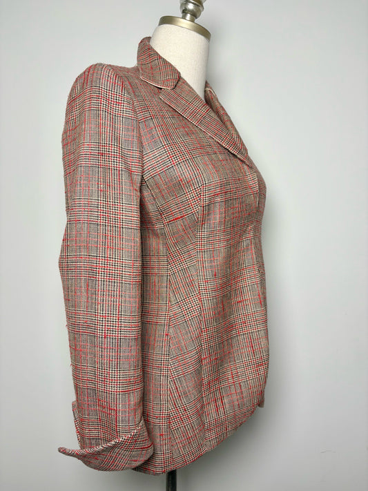Women Size 6 Akris Khaki, Red, Black Plaid NWT Blazer