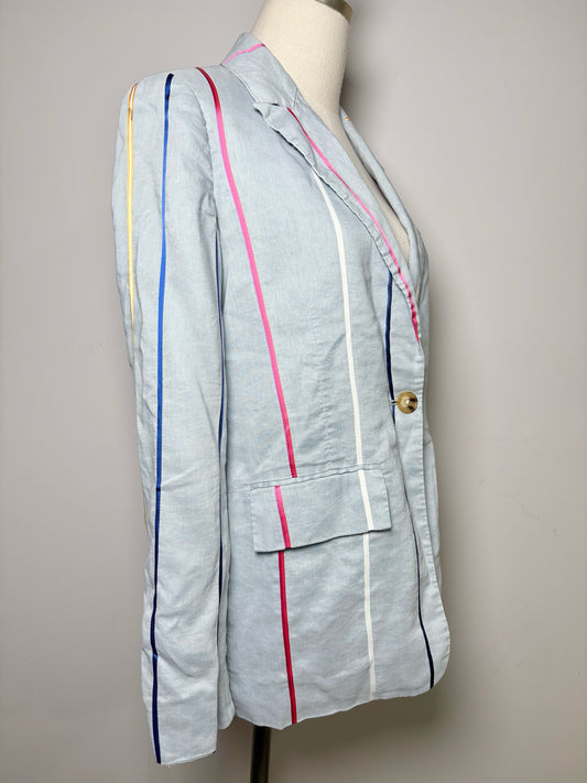 Women Size 2 Derek Lam 10 Crosby Light Blue Stripe Blazer