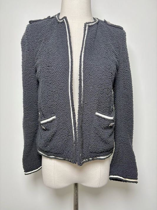 Ladies Blazer - The Kooples Black w/ White Trim Silver Daisies Open Front (S)
