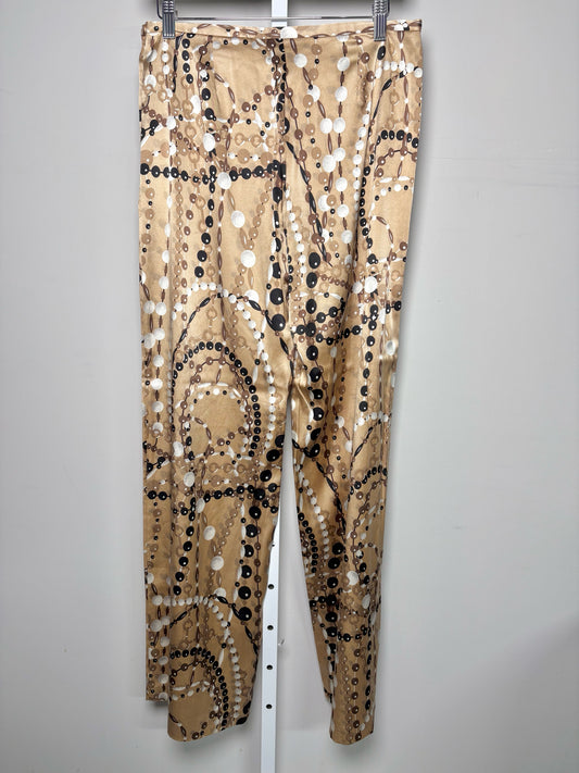 Women Size 4 Trina Turk Brown, Black Pearls Silk Wide Leg Pants