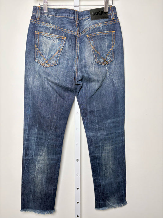 Women Size 26 (Sz 2) ROCKS Roy Roger's Blue Solid w/Embroidery Denim Jeans