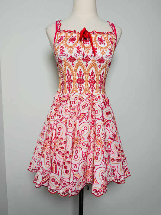 Women Size L Charo Ruiz Ibiza Pink, orange, white Eyelet Cotton Mini Dress