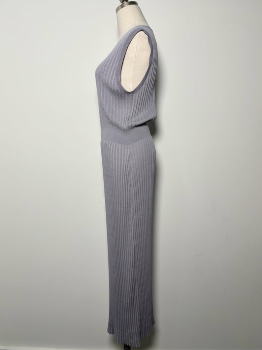 Women Size L Theory Gray Solid Pleated Center Knit Maxi Dress