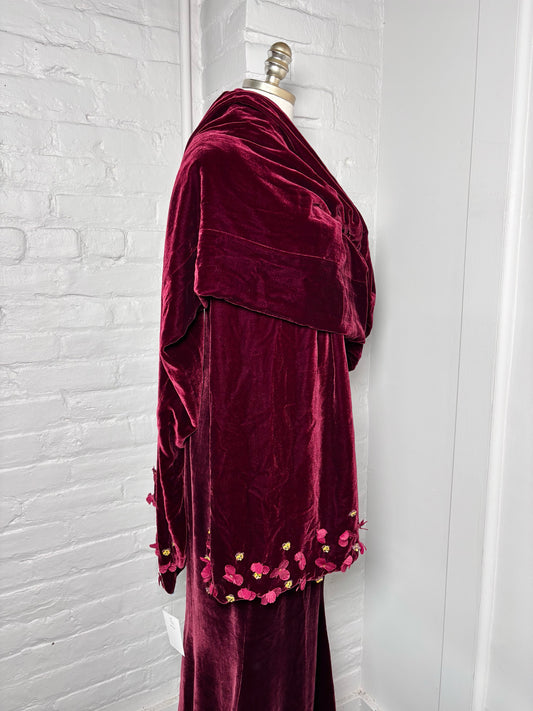 Women Size L (Estimate) Zang Toi Burgundy Solid Vintage Silk Gown