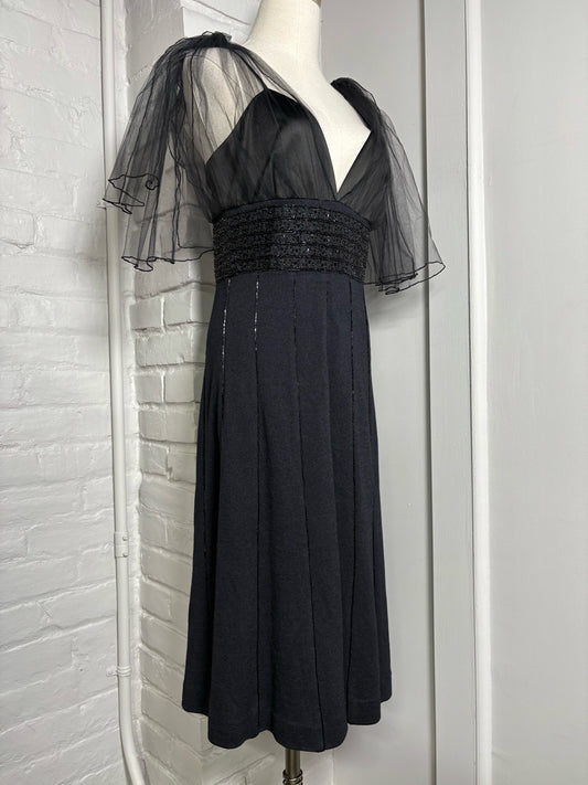 Women Size 6 St. John Couture Black Wool, Tulle Cocktail Dress