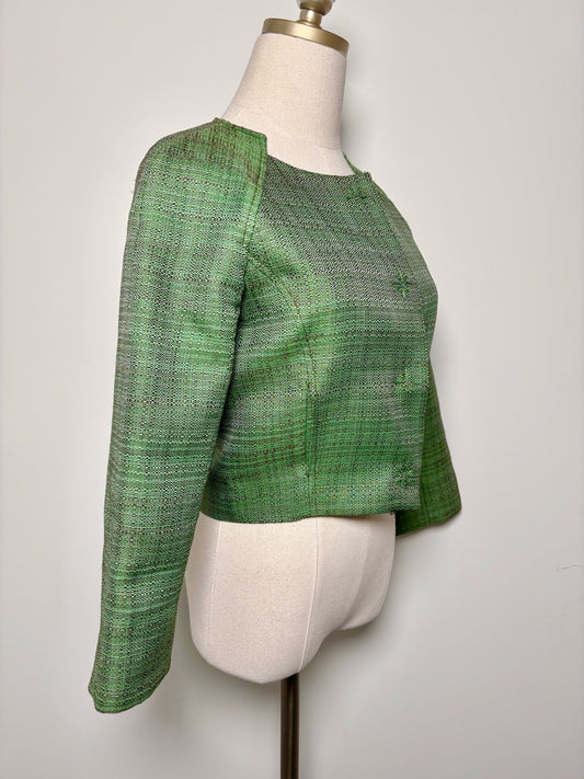 Women Size S Carolina Herrera Green Tweed Acetate Jacket