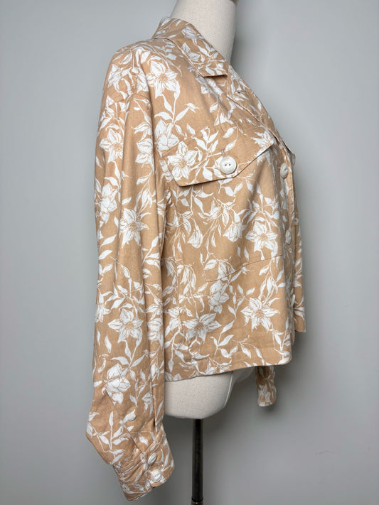 Women Size S Rag & Bone Tan Floral Linen Blend Jacket