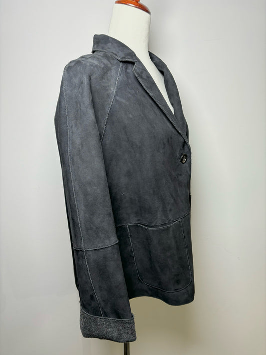 Women Size M Verdura Pelle Black Solid Suede Leather Jacket