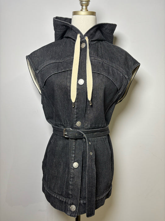 Women Size 6 Isabel Etoile Marant Black Solid Denim Hood Vest