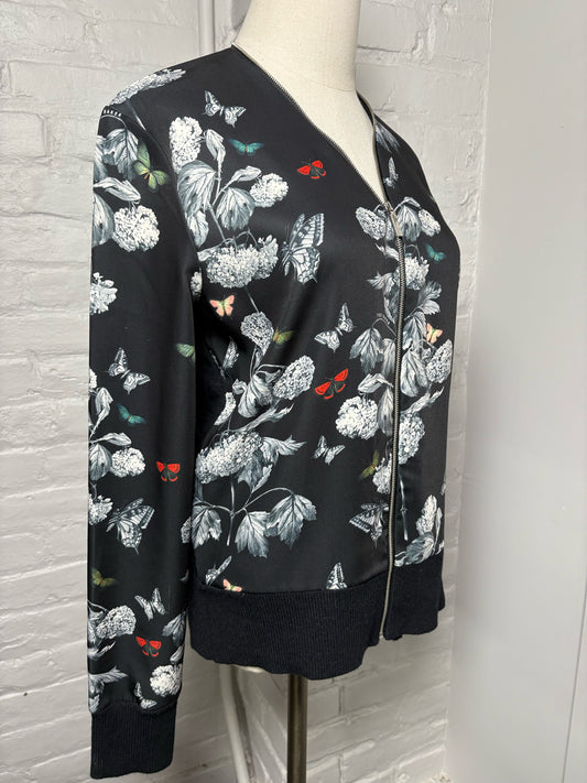 Women Size L Ted Baker Black, Gray, Red, White Floral Polyamide Jacket