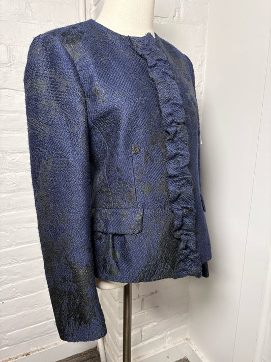 Women Size 44 (10, US) Piazza Sempione Navy, black Jacquard Wool Jacket