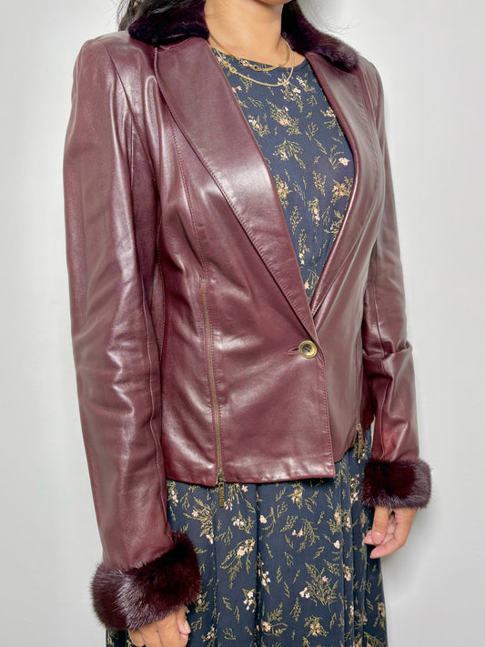 Women Size 10 Christian Dior Maroon Solid Lambskin Vintage Jacket