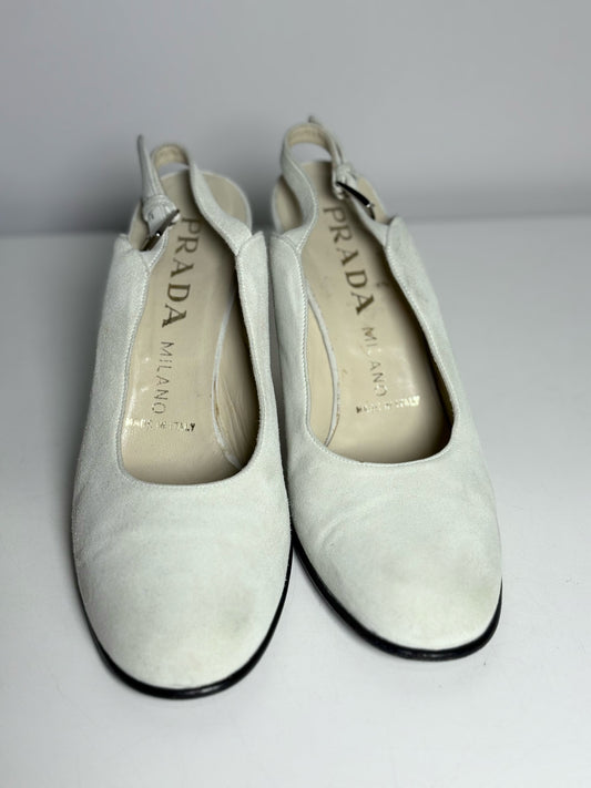 W Shoe Size 38 (8.5 US) Prada Bone/Cream Suede Curved Block Heel