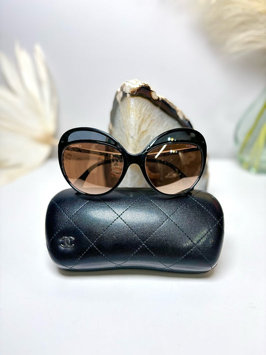 Acetate Chanel Black Cat-eyed Mirrored Sunglasses
