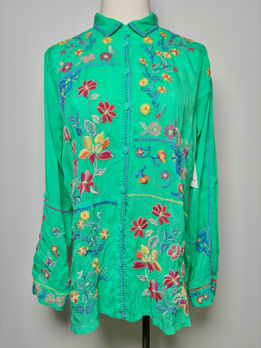 Women Size XS Johnny Was Green Floral Rayon NWT Blouse