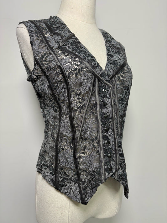 Women Size 8 Chantal Thomas Paris Black, Silver Lace Vest Top