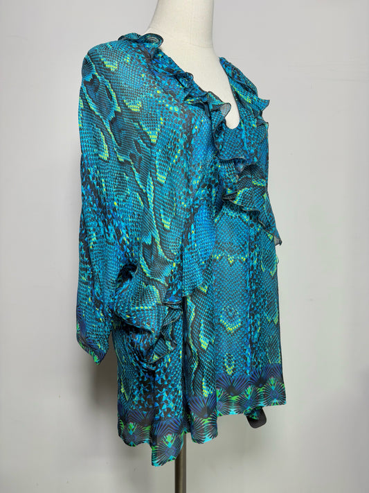Women Size 48 (10, US) Roberto Cavalli Turquoise Snakeskin Print Blouse