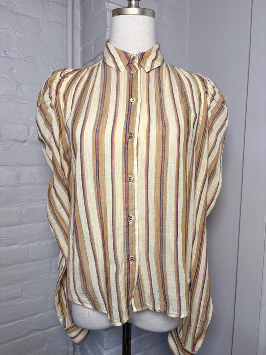 Women Size 0 Ulla Johnson Cream, yellow, red Stripe Cotton Shirt