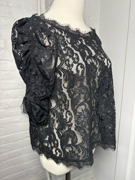 Women Size M Joie Black Lace Nylon Blend Blouse