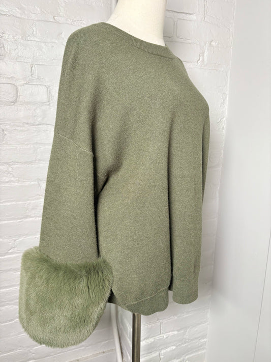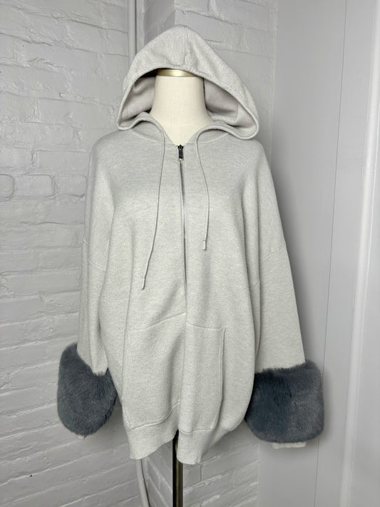 Women Size M Saks Fifth Avenue Gray Zip Front Fur Trim Sweater