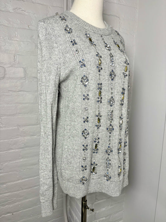 Women Size L Tory Burch Gray Rhinestones Nylon, Cotton, Modal, Wool Sweater