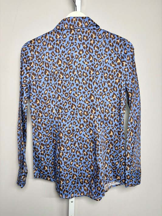 Women Size S Kevin's Huntress Collection Blue Leopard Spots Cotton Shirt