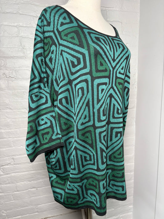 Women Size XL/XXL Peruvian Connection Teal, black Geometric Not Vintage Sweater