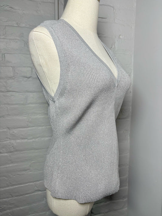 Women Size L Veronica Beard Silver Sparkle Sweater Vest