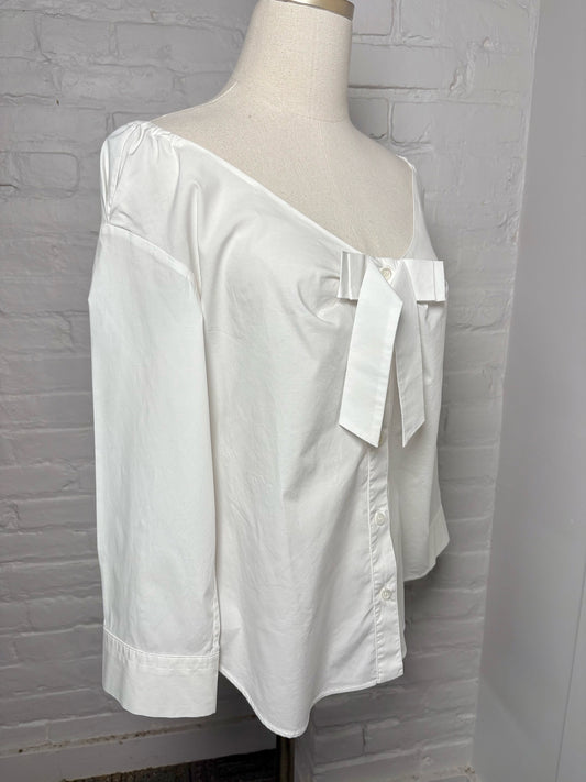 Women Size M Moschino White Cotton Long Sleeves Bow Shirt