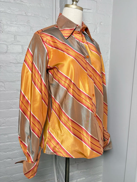 Women Size 10 Pamella Roland Orange, Brown, Red Striped Silk Shirt