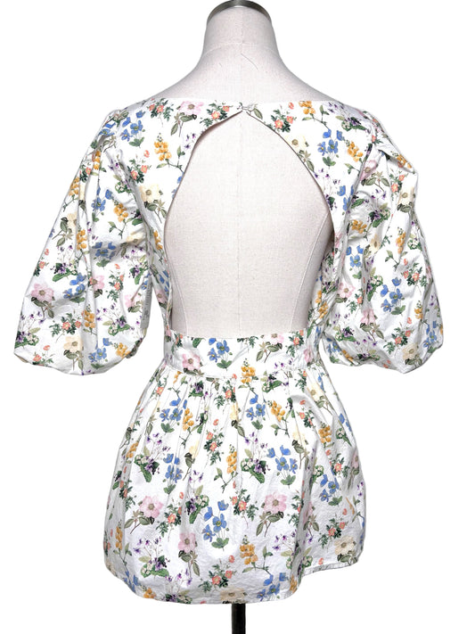 Women Size M Marissa Webb White, blue, pink, green, yellow Floral Cotton Blouse