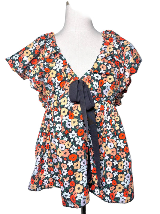 Women Size M Aguabendita Orange, green, red, blue Floral Cotton Blouse