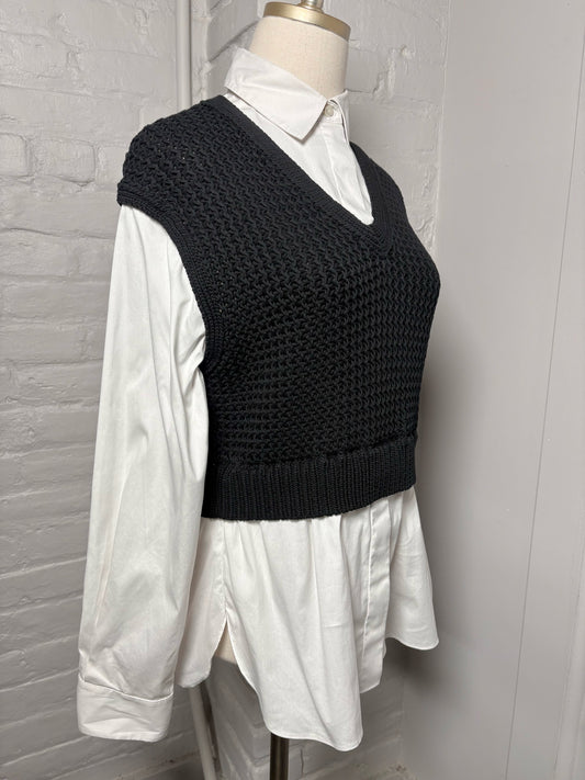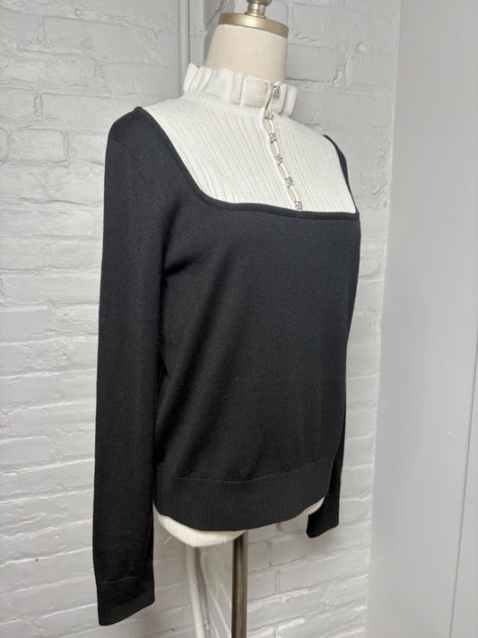 Women Size S Sandro White, Black Colorblock Wool Blend Sweater