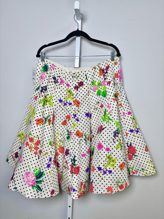 Women Size 16 Oscar de la Renta Multi-Color Dot, Floral Print Silk Skirt