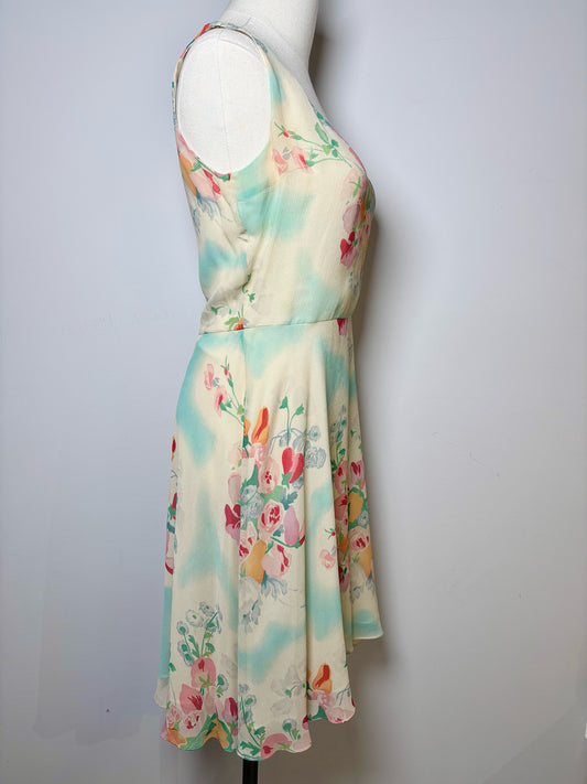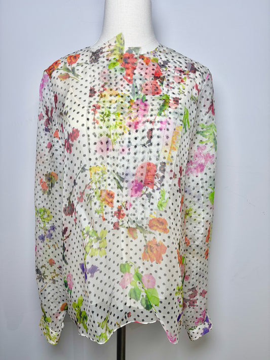Women Size 14 Oscar de la Renta Multi-Color Dot, Floral Print Silk Blouse