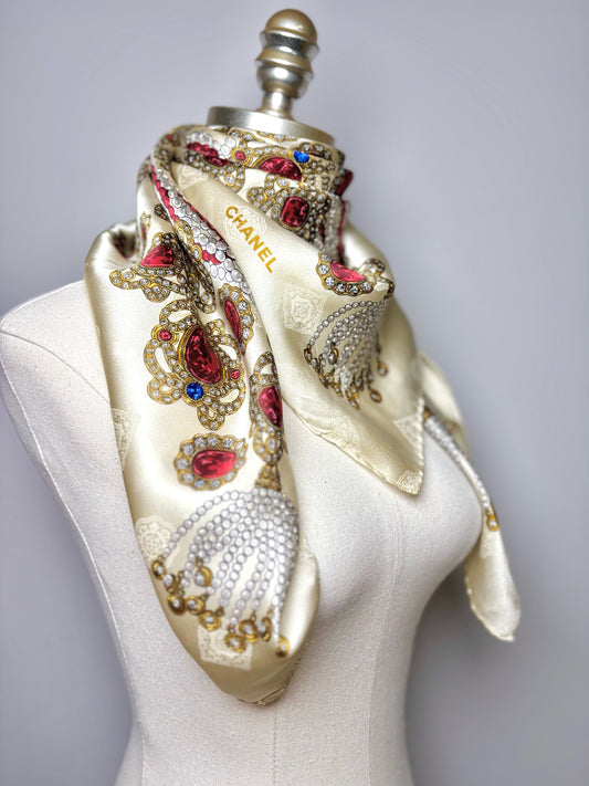 Chanel Multi-Color Print Silk Scarf 33 x 33