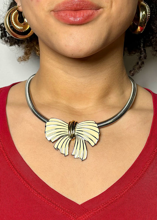 UnavailableTrifari Enamel Cream Bow Vintage Necklace