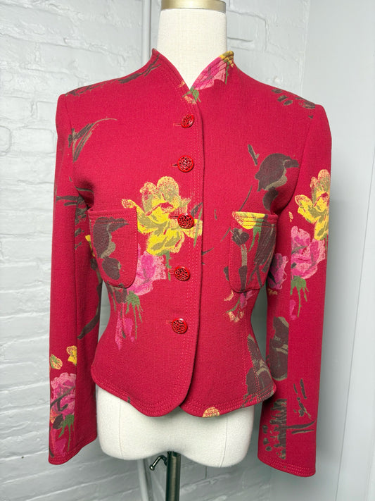 Women Size 8 Emanuel Ungaro Red, yellow, green Floral Vintage Wool 2 Piece Set