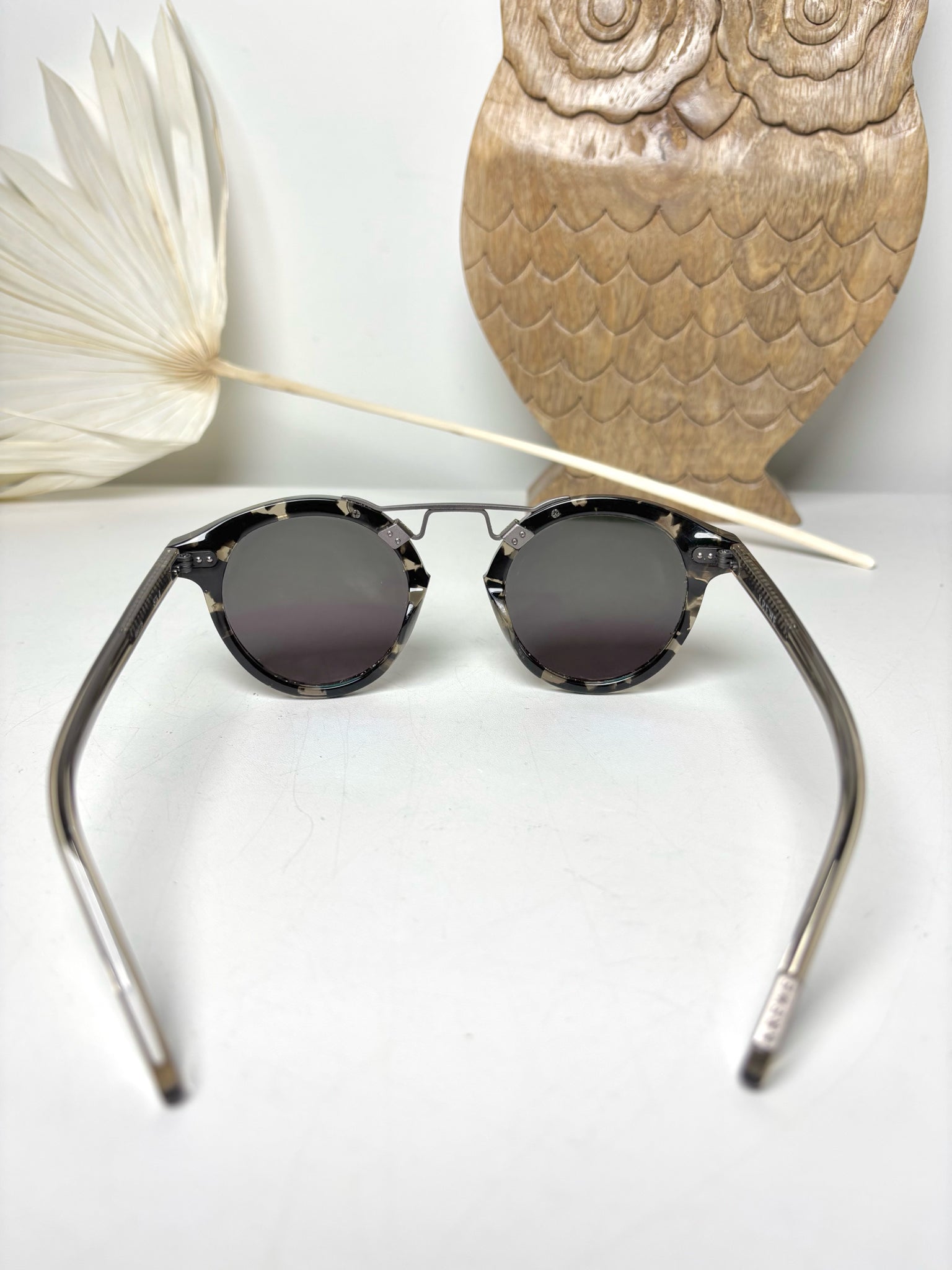 Krewe black and gray tortoise frames Iconic Classic sunglasses. Comes with a black pouch.