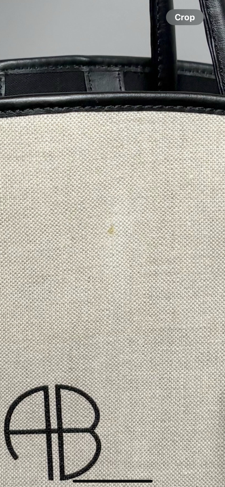 Anine Bing Logo Cotton Khaki Leather Trim Logo Taylin Tote