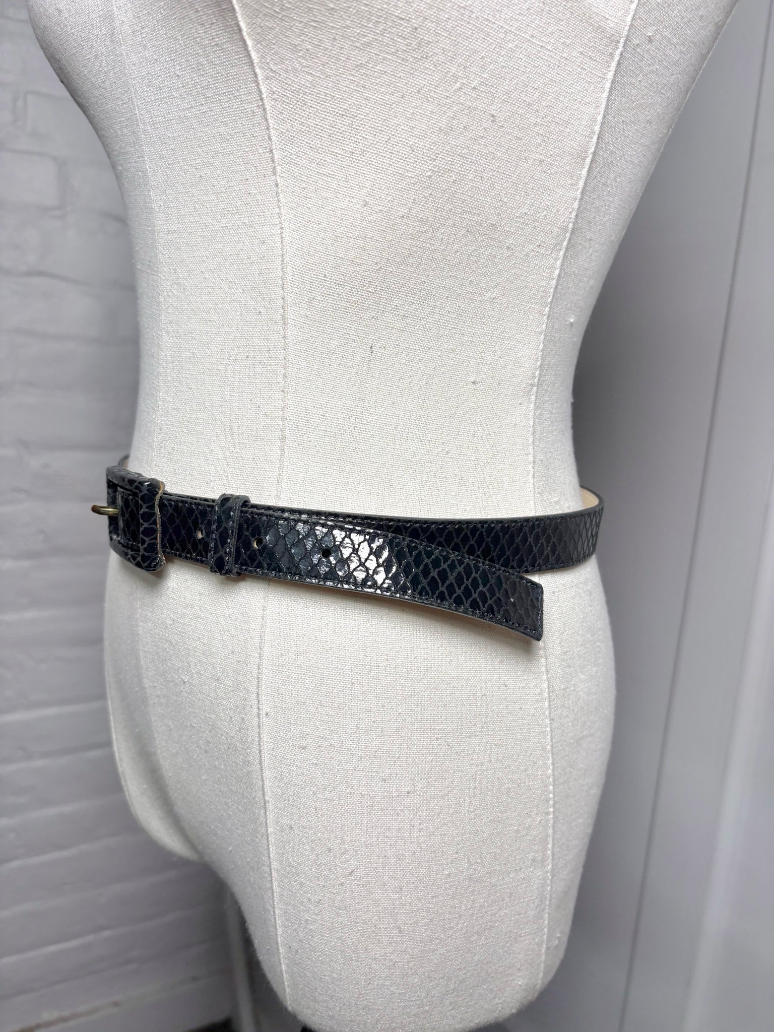 St. John Black black leather croc embossed belt in a size small/4. Made from Spanish leather.