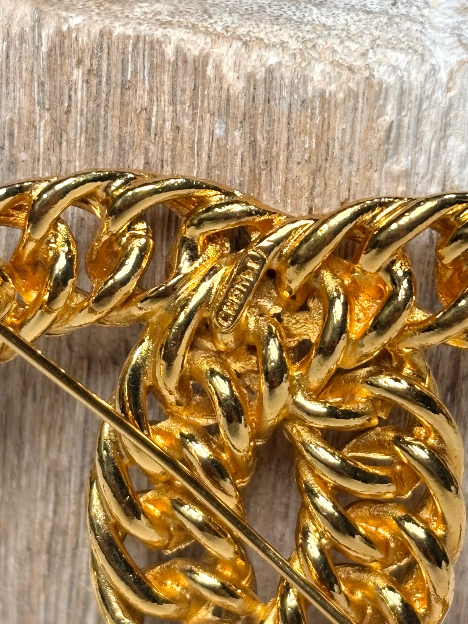 Vintage Chanel 1980s CC Gilt Chain Pin — 2" x 3"
