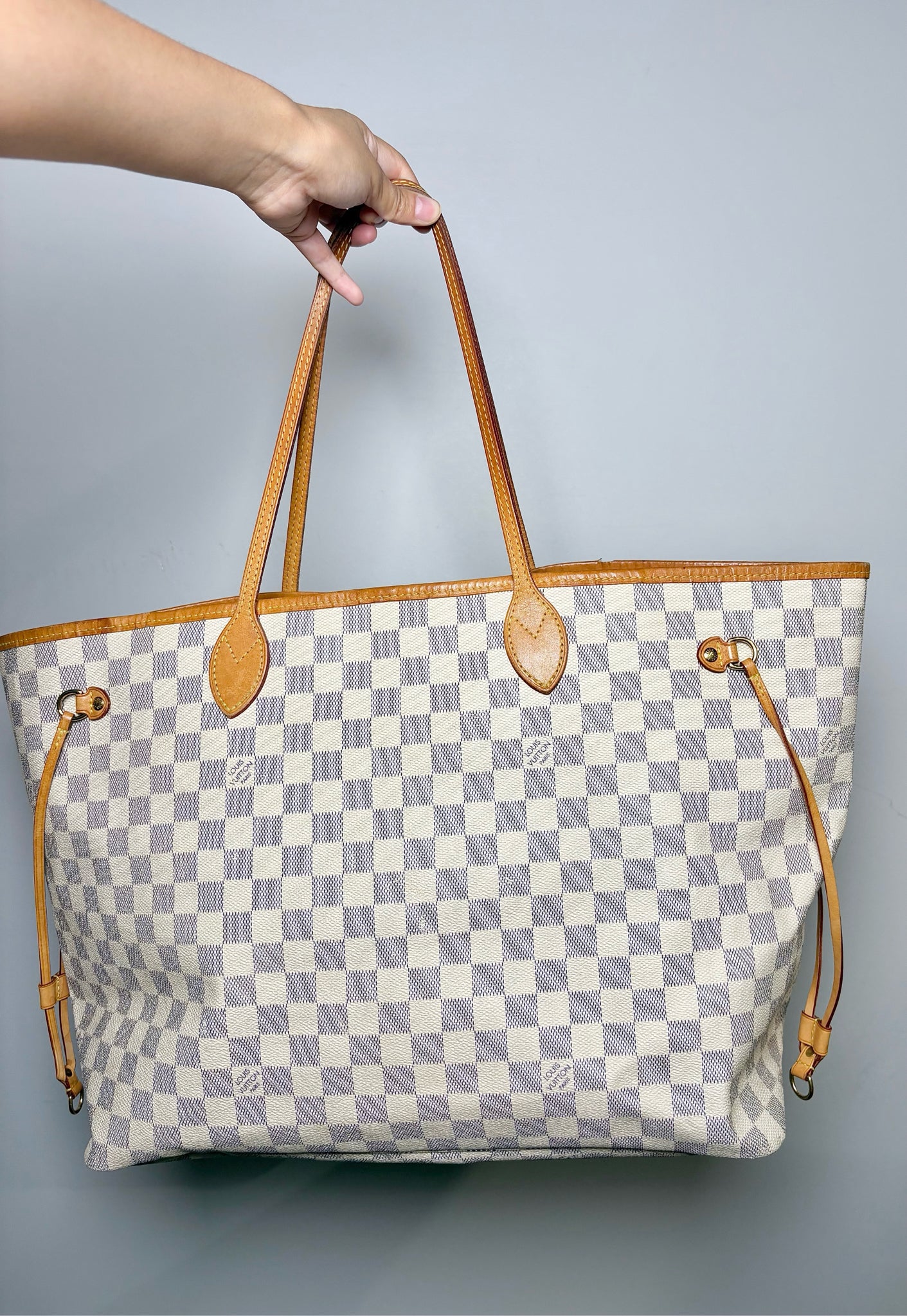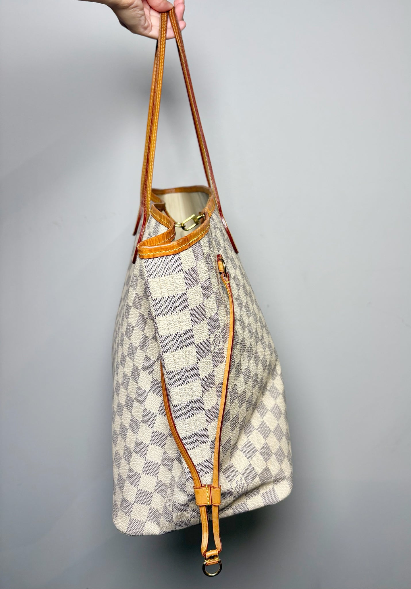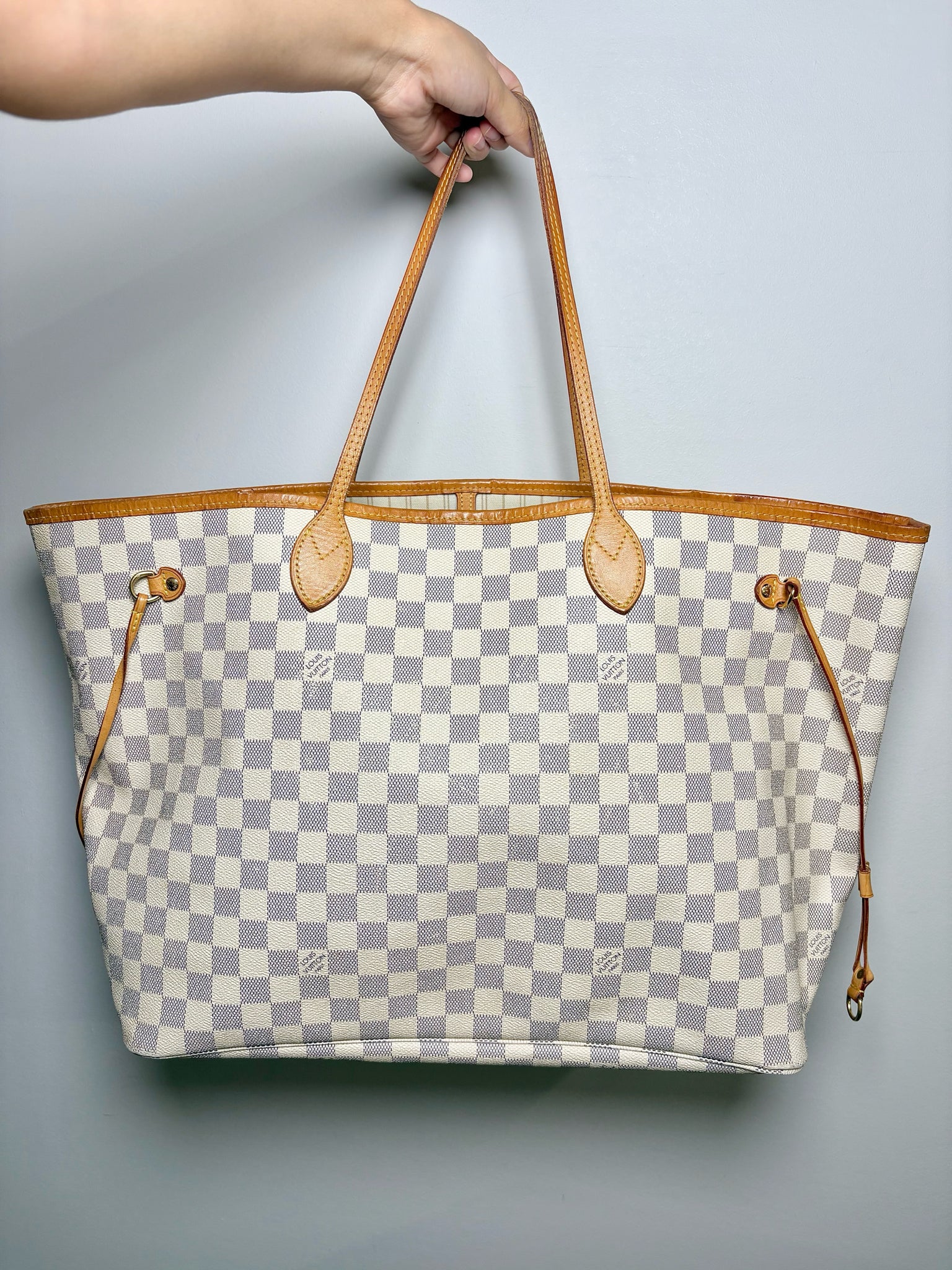 Louis Vuitton brown Neverfull Damier Azur Neverfull bag with pouch (Largest Size). Pre-owned.