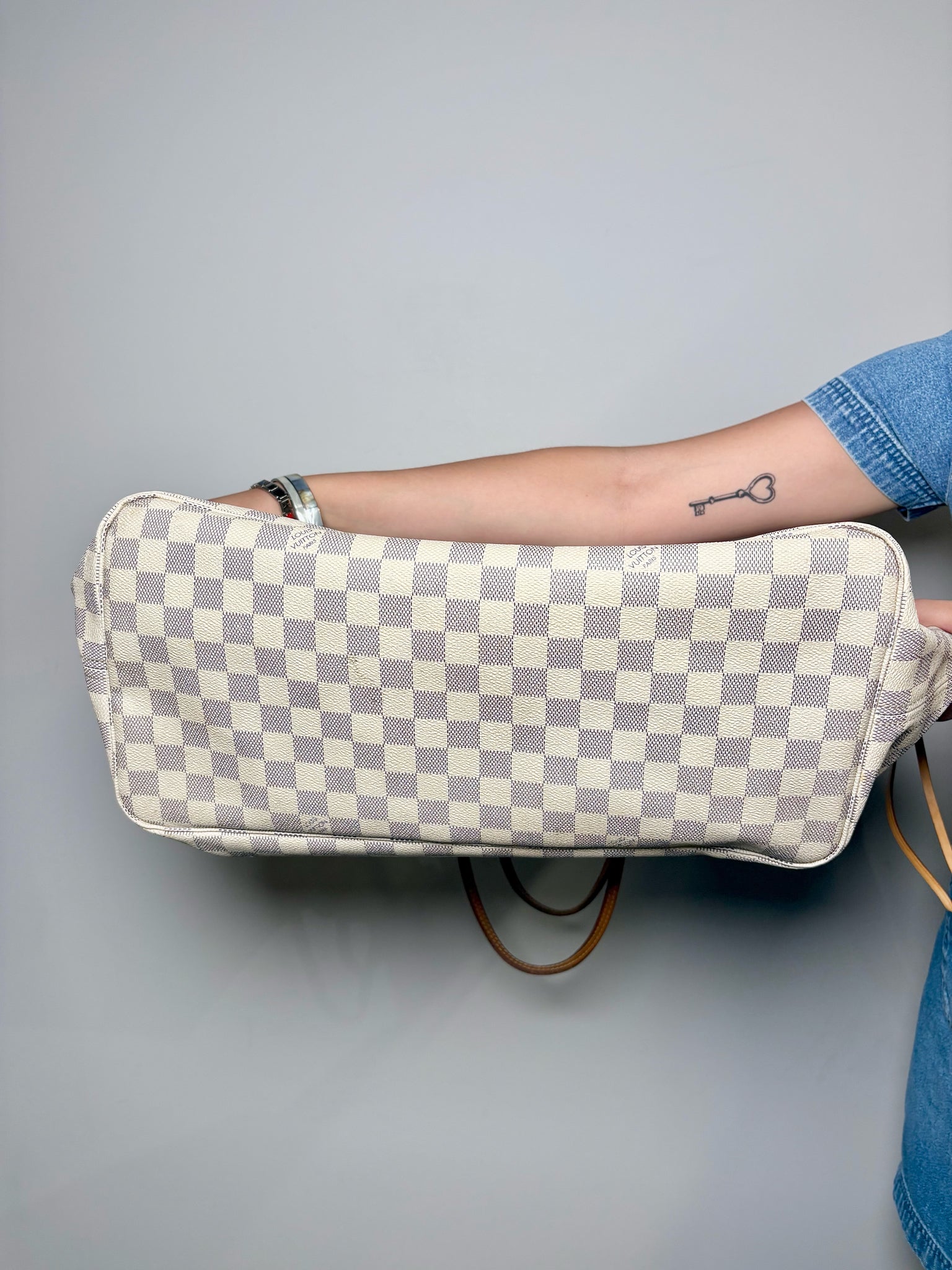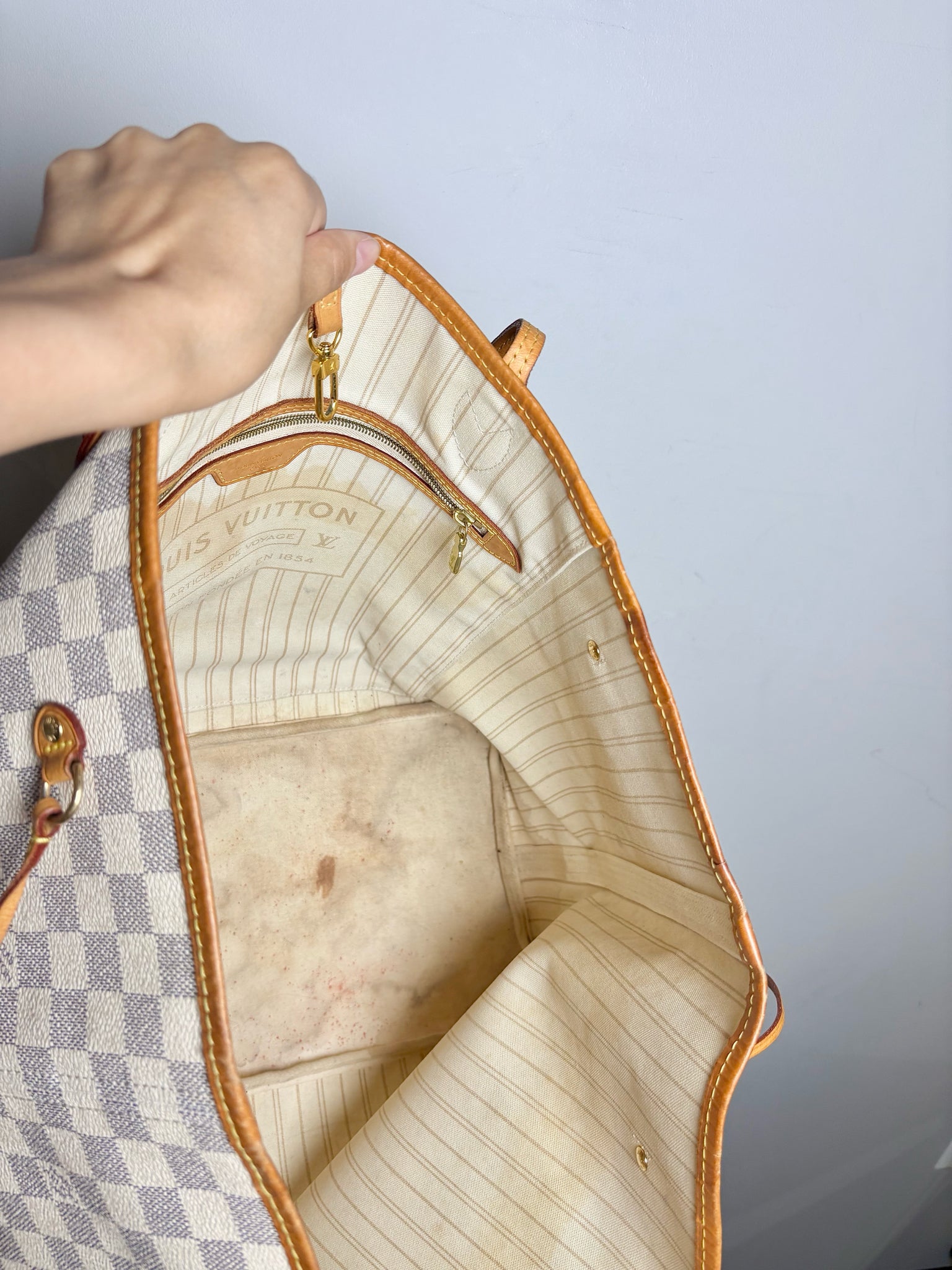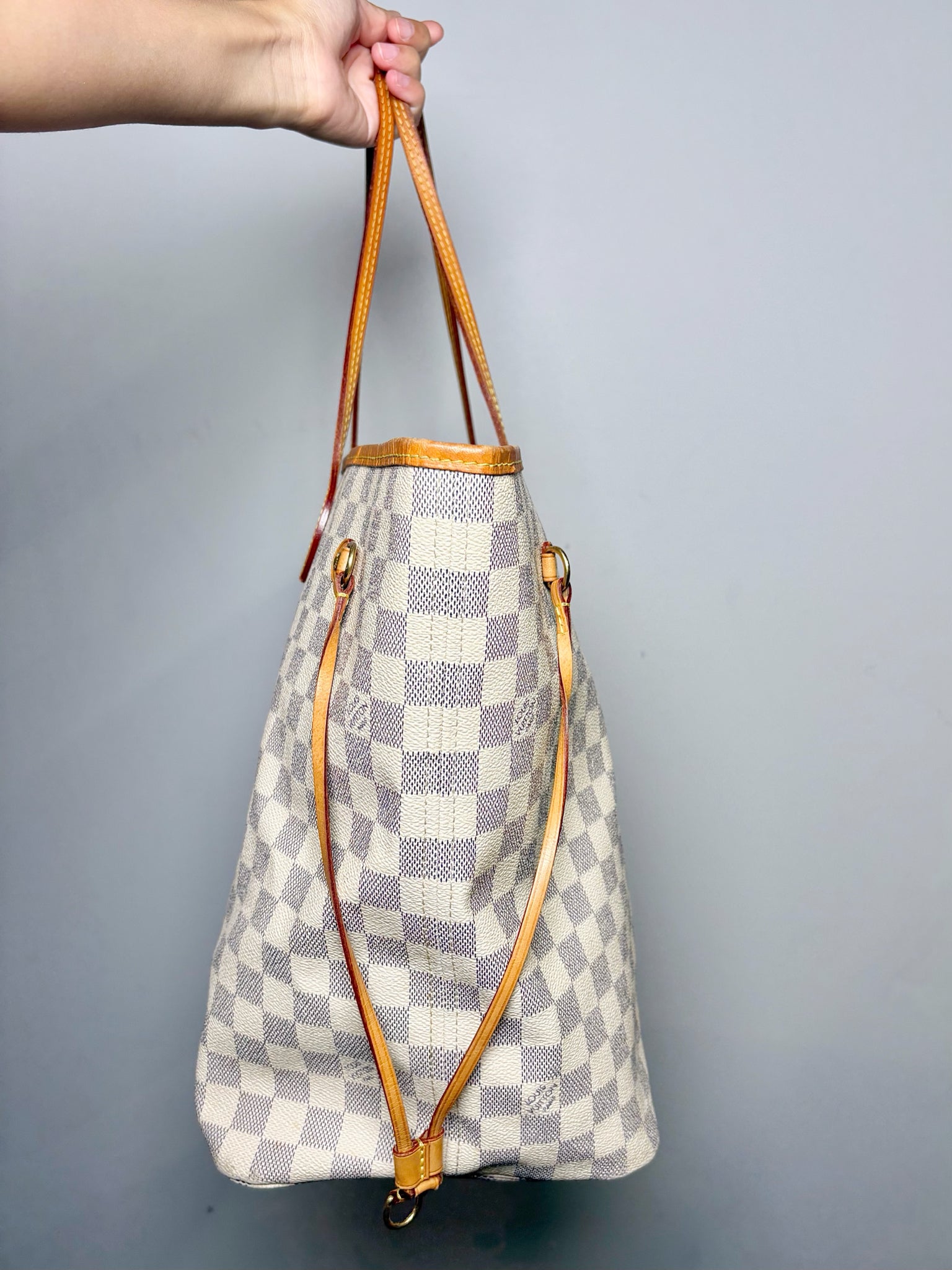 Louis Vuitton brown Neverfull Damier Azur Neverfull bag with pouch (Largest Size). Pre-owned.