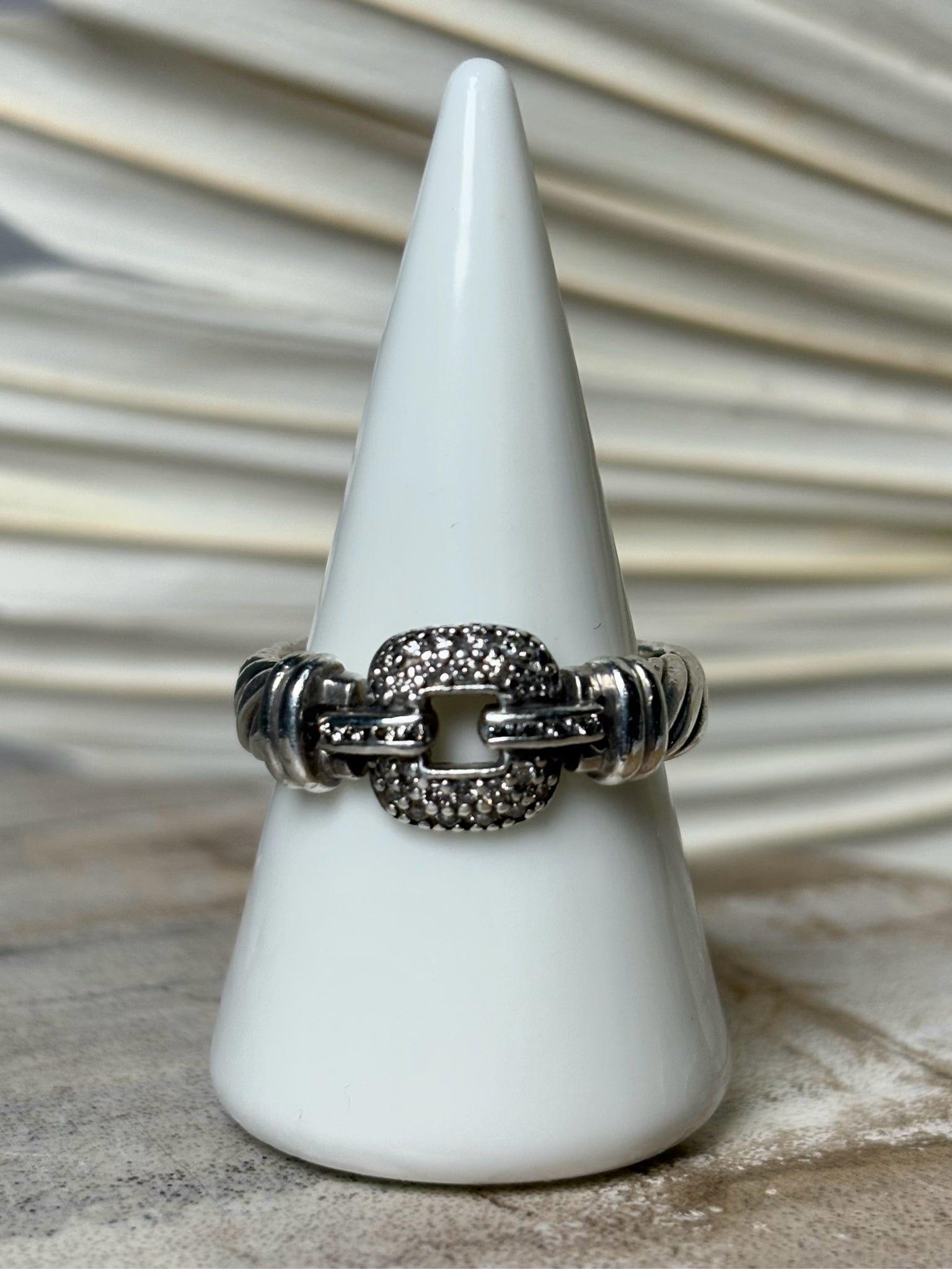 David Yurman Diamond Sterling Silver Buckle Sz. 7.5 Ring