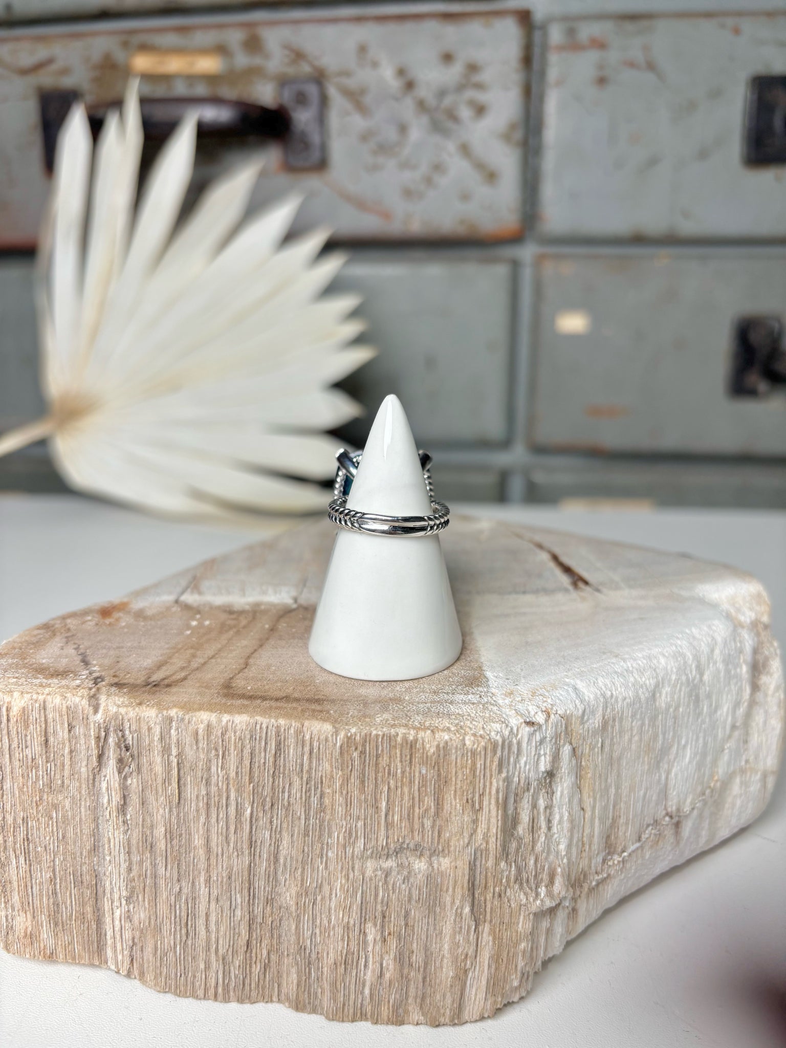 Elevate your accessory collection with this iconic David Yurman Chatelaine ring. Crafted in sterling silver, it features a vibrant blue topaz gemstone that catches the light beautifully. Comes with the original pouch, perfect for gifting or secure storage. Pre-Owned.
