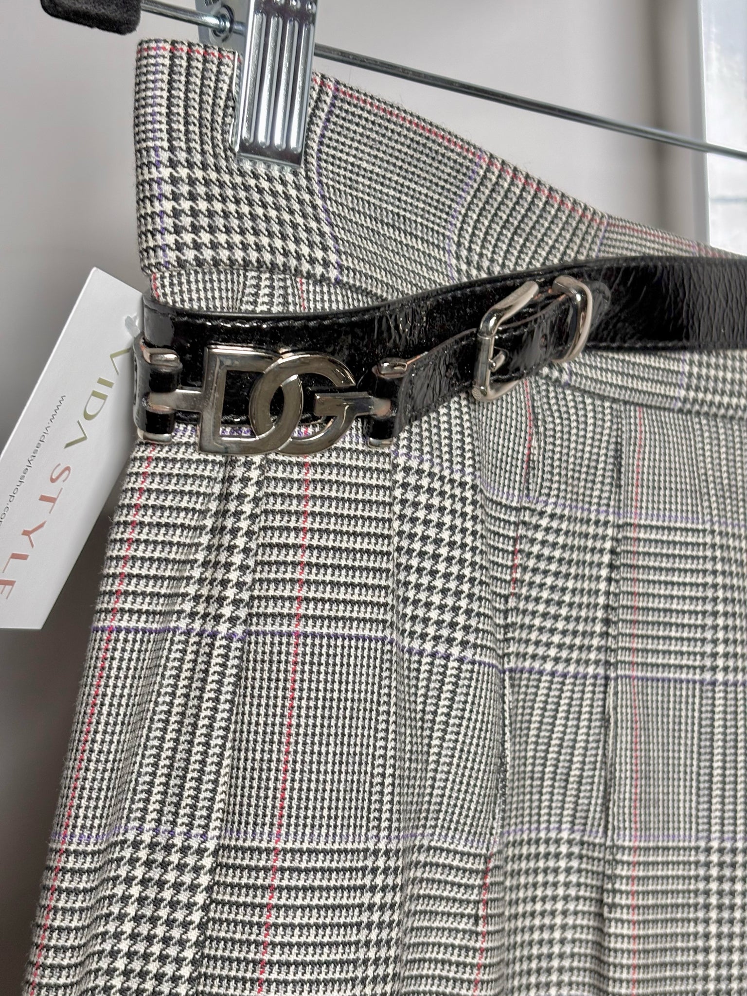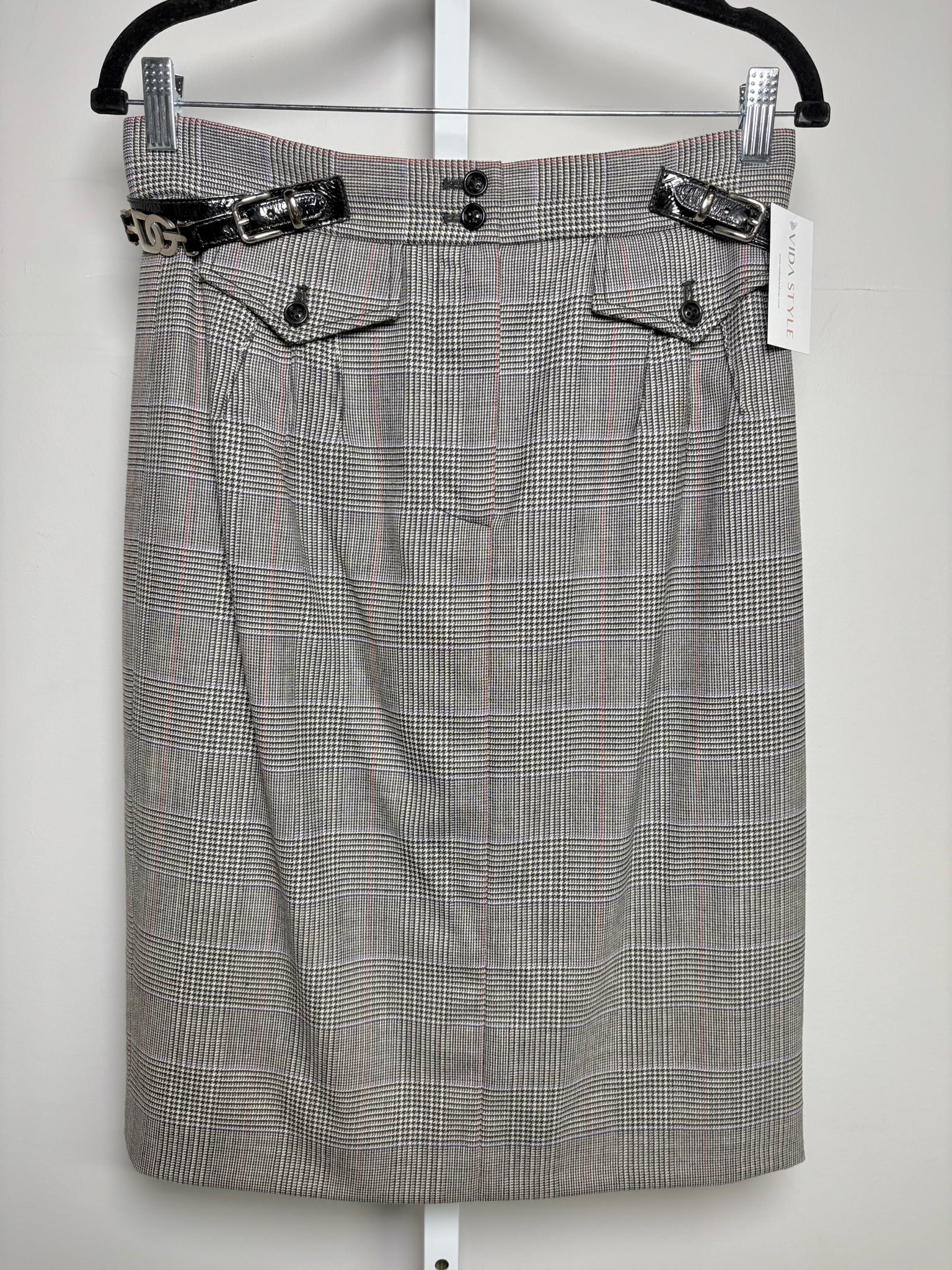 Dolce & Gabbana Gray Plaid Silver Logo Buckles Skirt