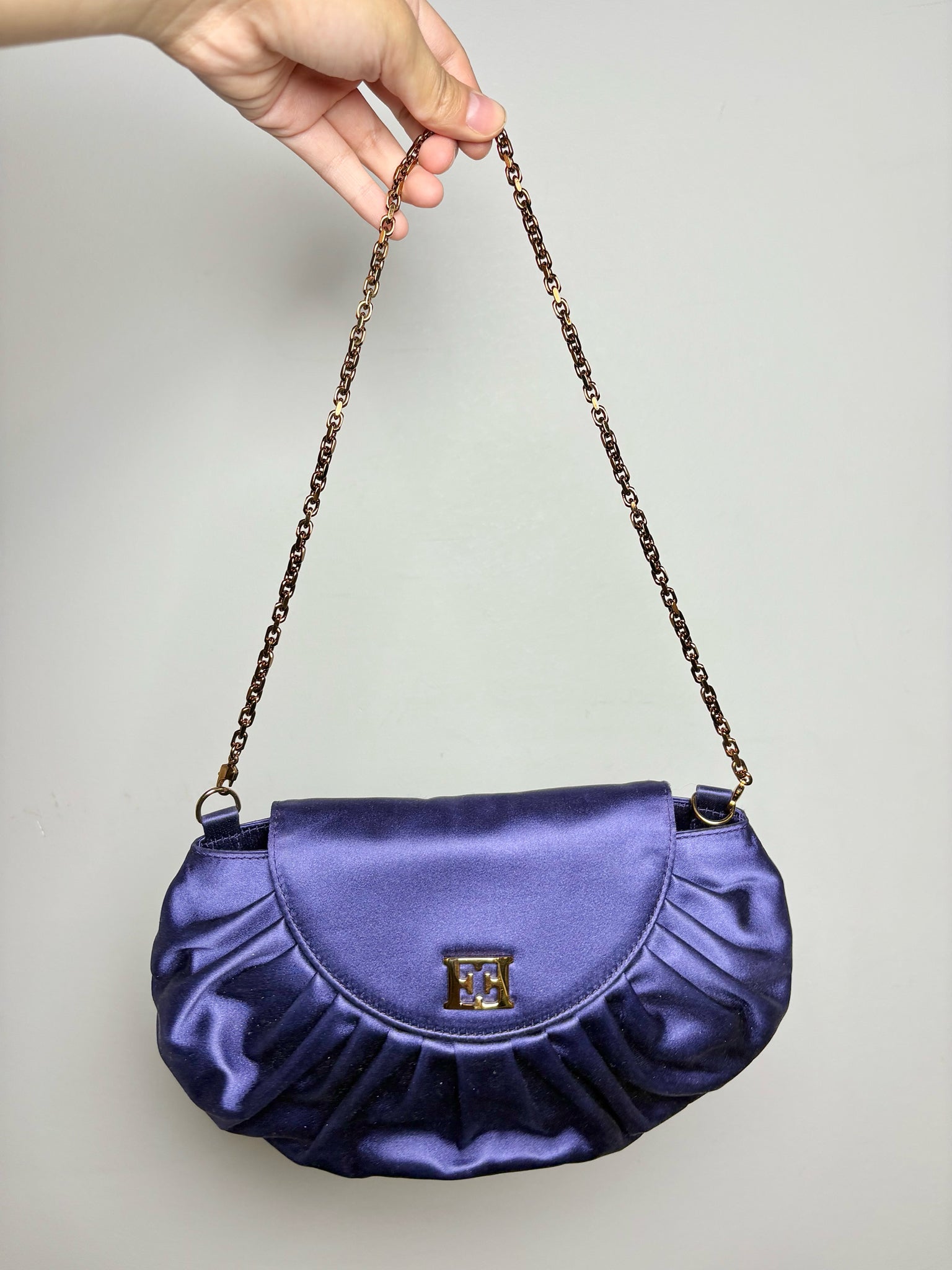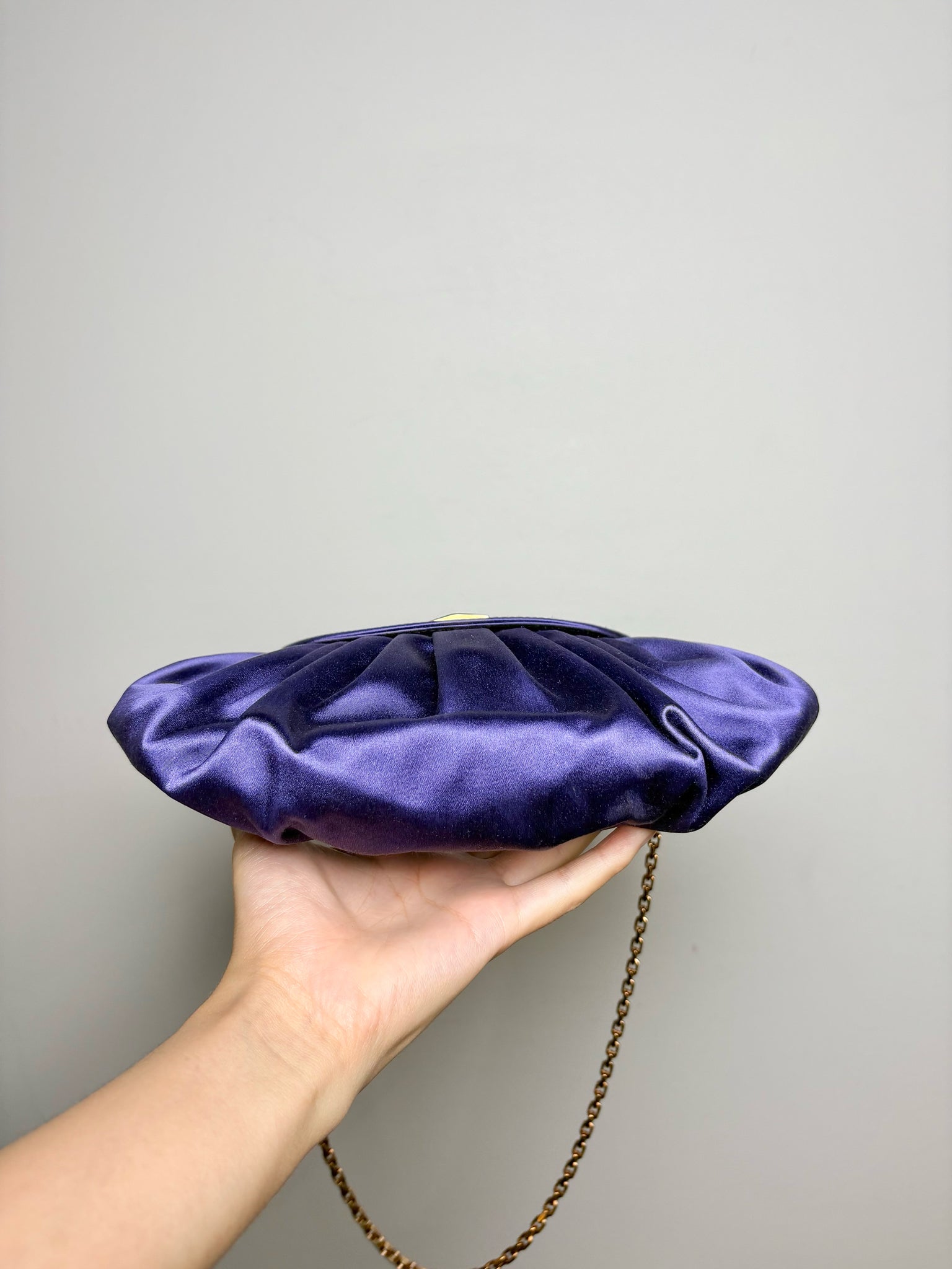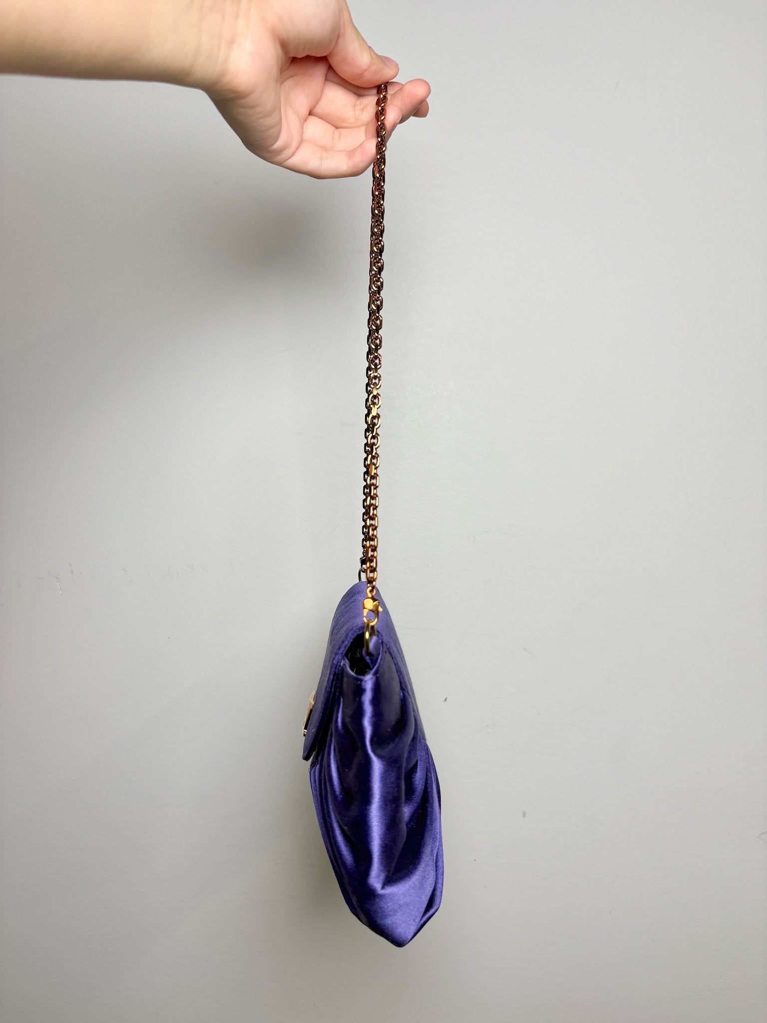 Escada Solid Satin Purple w/Gold Chain Shoulder/Clutch Purse